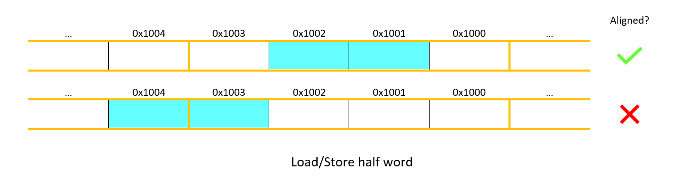 | lh rd, offset(rs1) | 0x1 | R[rd] ← SignExt(Mem(R[rs1] + offset, half)) | |||